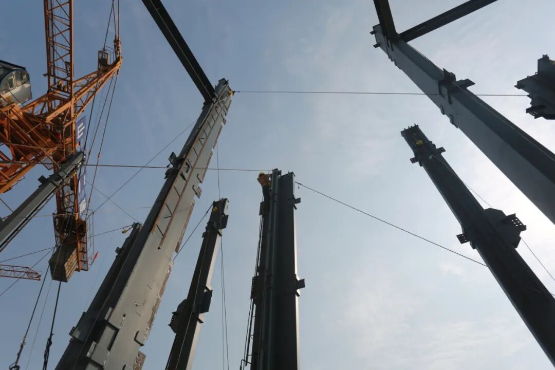 密集的鋼梁、鋼柱▲